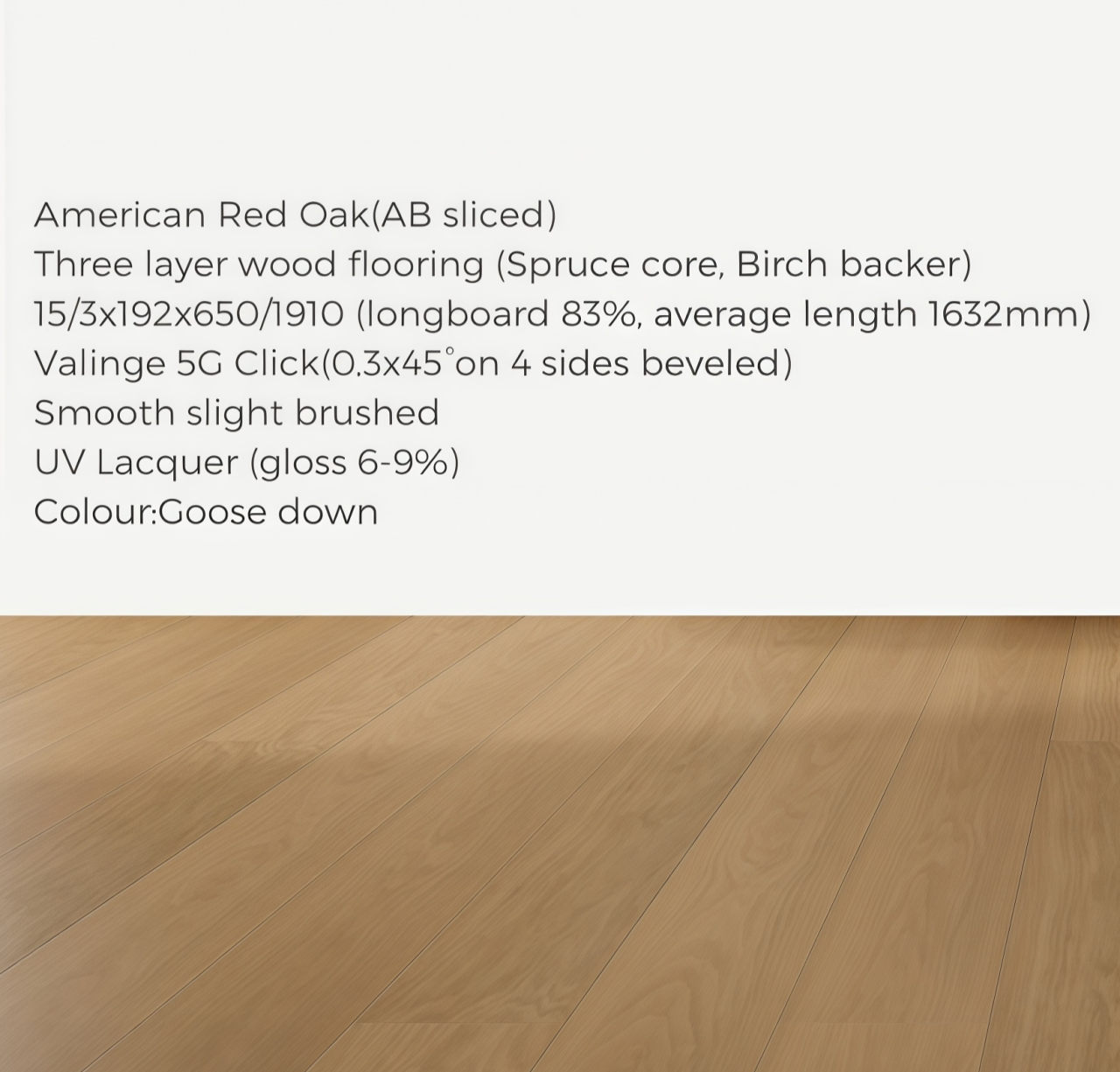 # Three layer 15/3x192x1910 5G Click # American Red Oak, AB # Smooth slight brushed # UV Lacquer