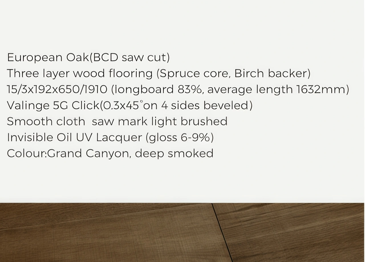 # Valinge 5G Click # European white oak # 3-layer engineered BCD Grade # Invisible oil, UV lacquer. light brushed