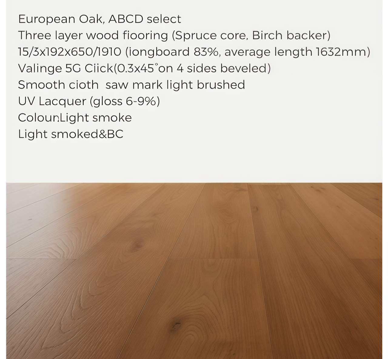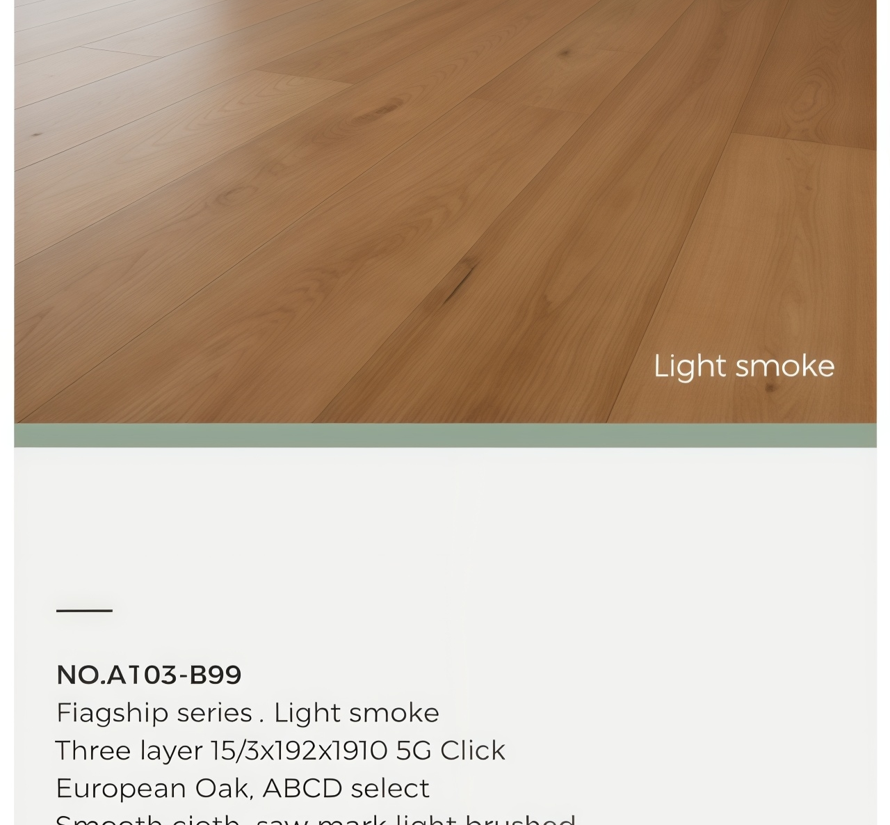 # Valinge 5G Click # European white oak # 3-layer engineered BCD Grade # UV lacquer. light brushed