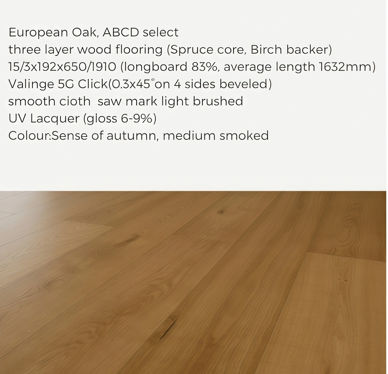 # Valinge 5G Click # European white oak # 3-layer engineered BCD Grade # UV lacquer. light brushed