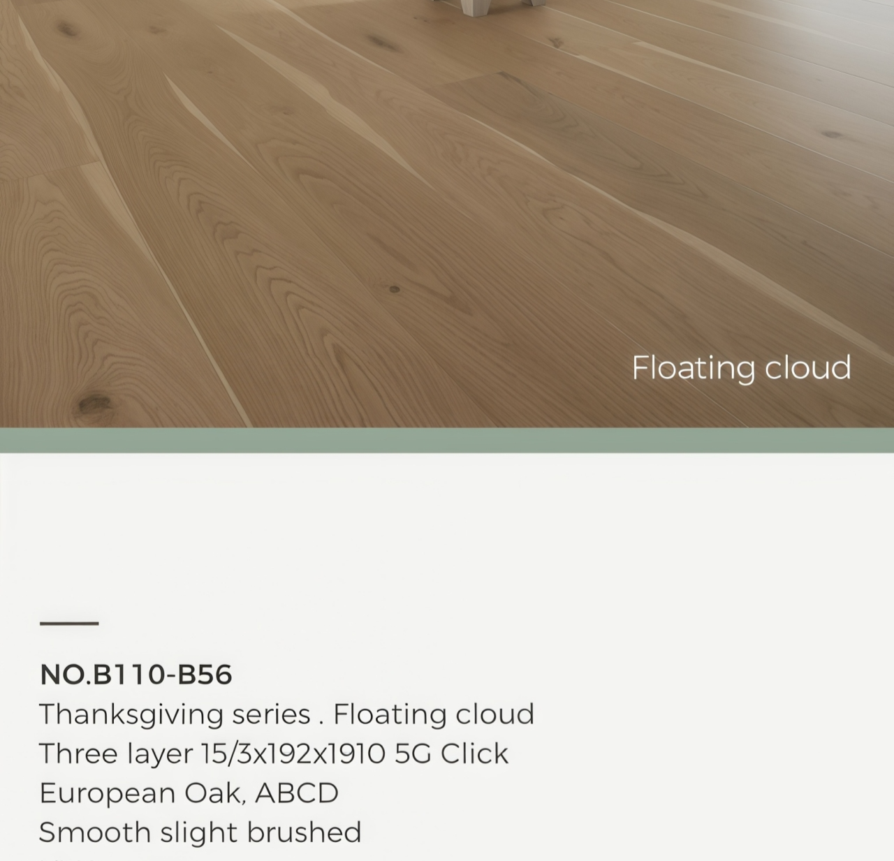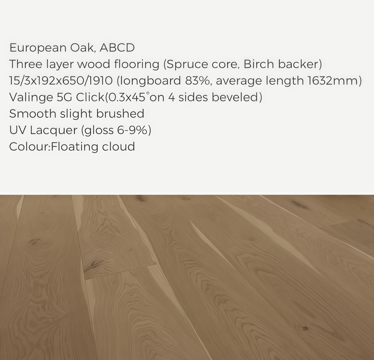 # Three layer 15/3x192x1910 5G Click # European Oak, ABCD # Smooth slight brushed # UV Lacquer