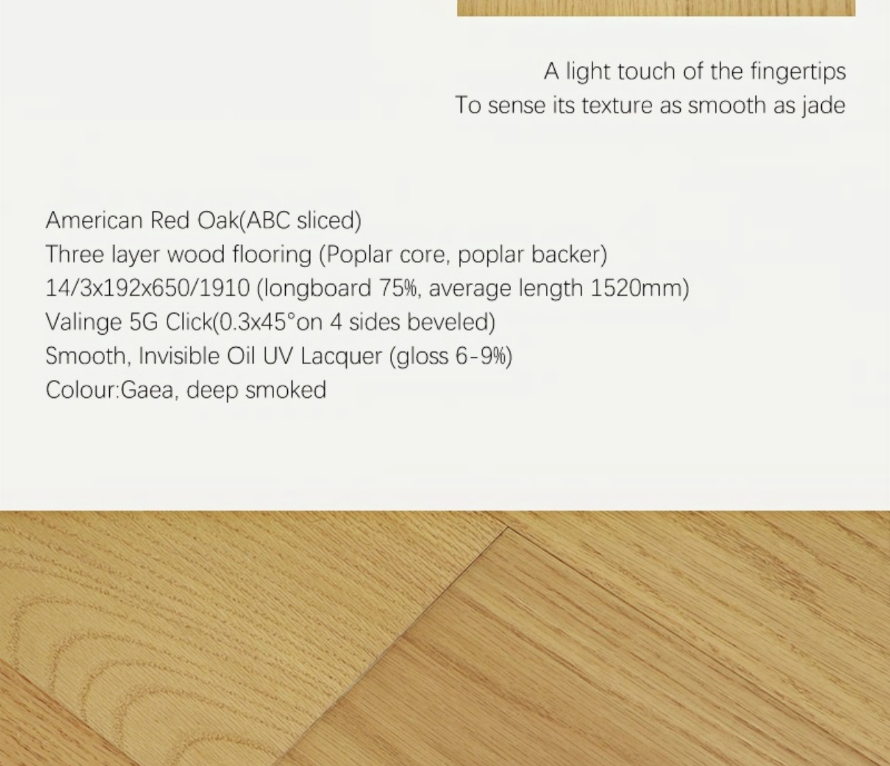 # Three layer 14/3x192x1910 5G Click # American Red Oak, ABC # UV Lacquer