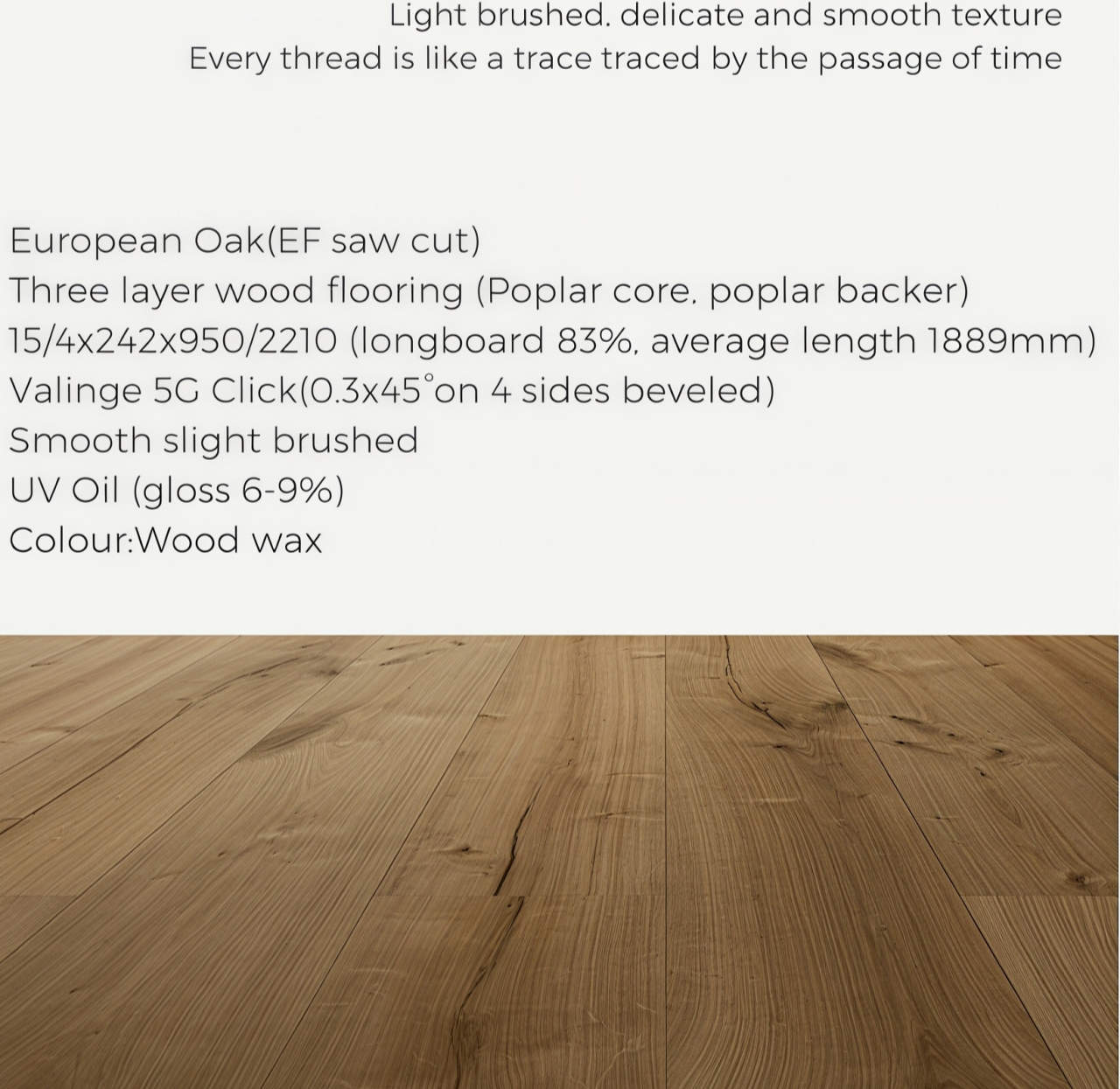 # Three layer 15/4x242x2210 5G Click # European Oak, EF # Smooth slight brushed # UV Oil